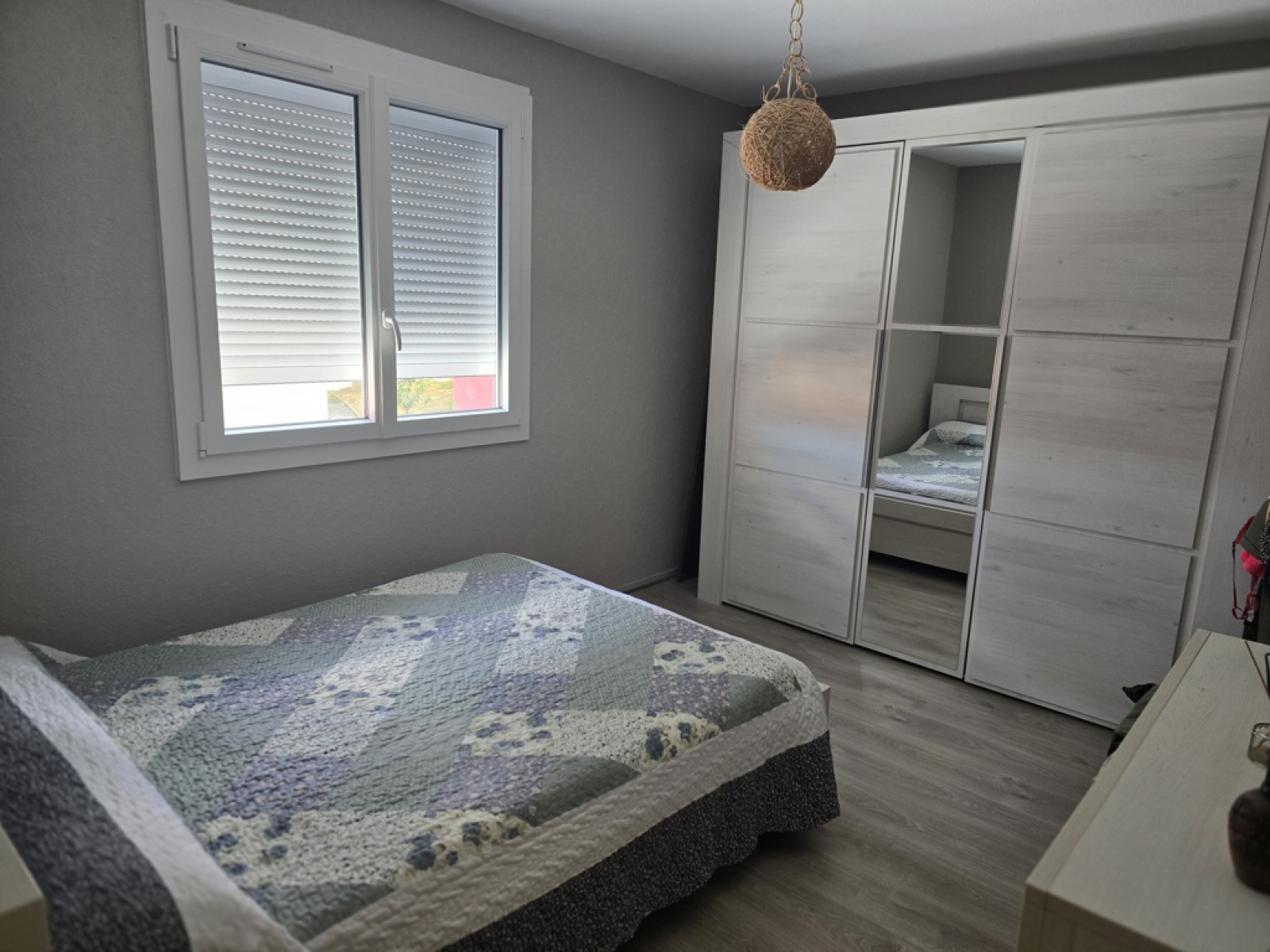 Entrée/dégagement avec rangement, grand séjour avec accès loggia fermée, cuisine aménagée, deux chambres, salle de bains, wc