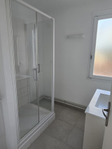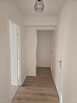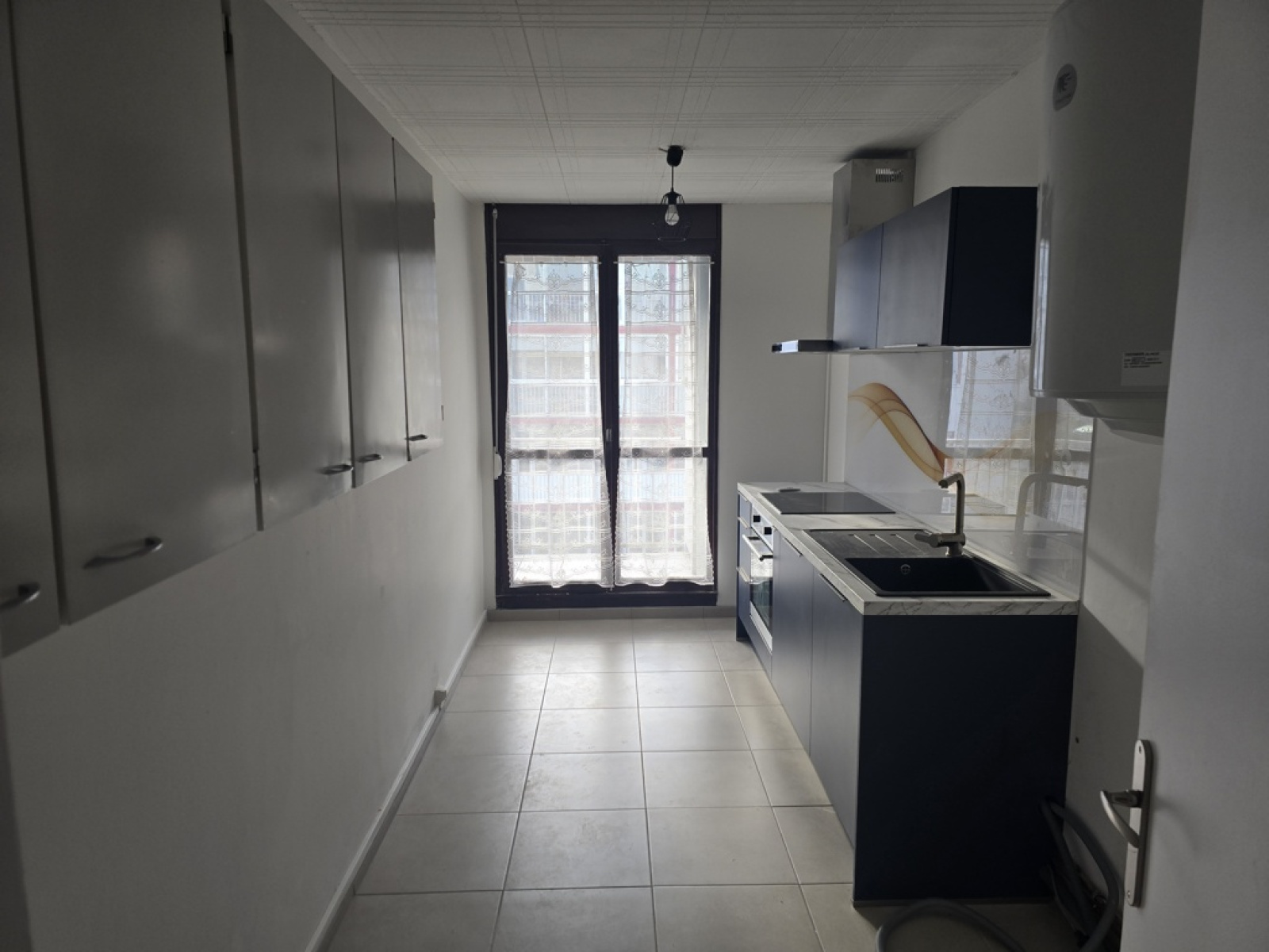 Il comprend : une entrée sur couloir avec deux petites pièces de rangement, cuisine en partie équipée (meubles, plaque de cuisson, hotte et four), séjour sur balcon, trois chambres, salle d'eau (douche), wc séparés.