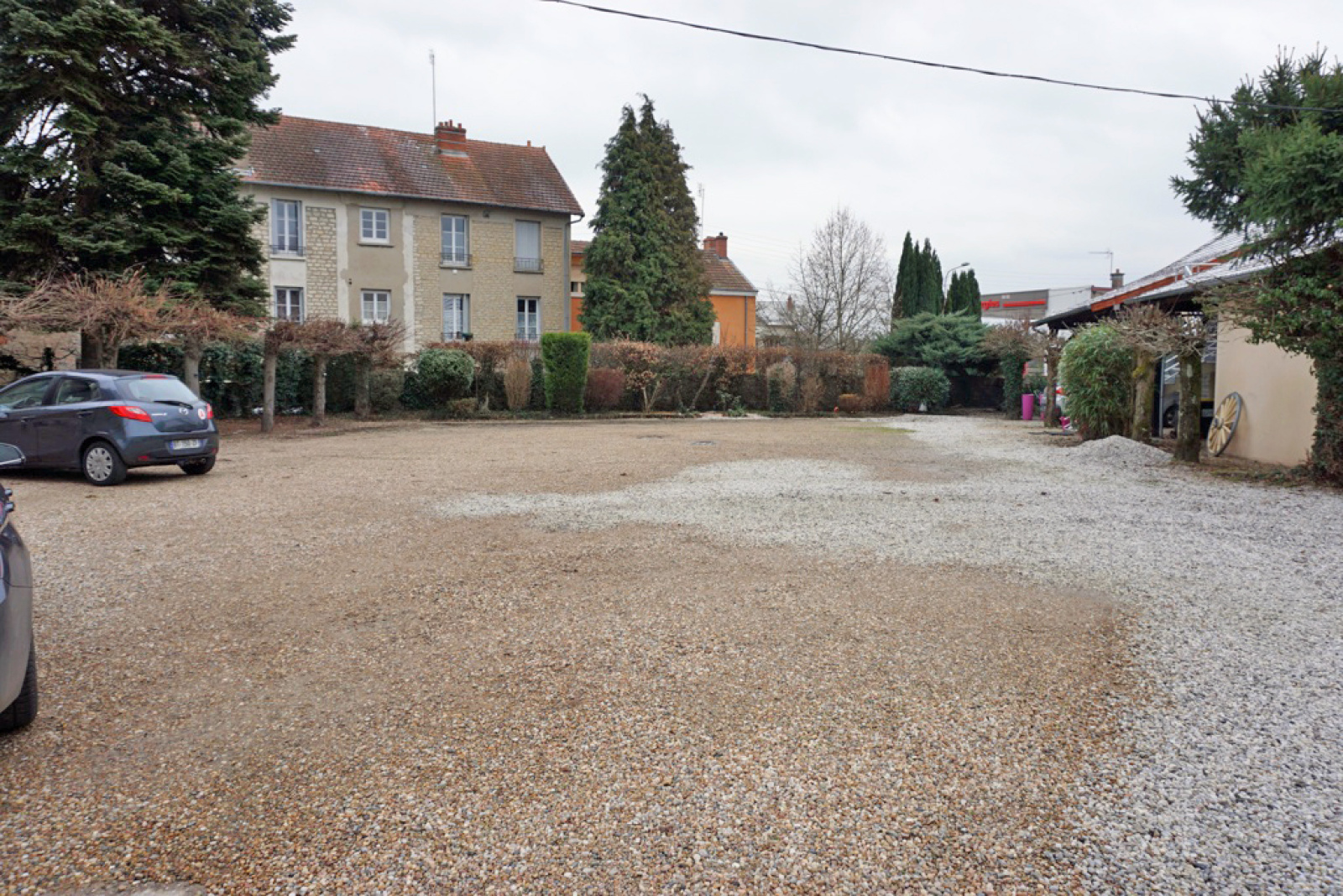 Grand parking privatif pouvant accueillir voitures et autocars.