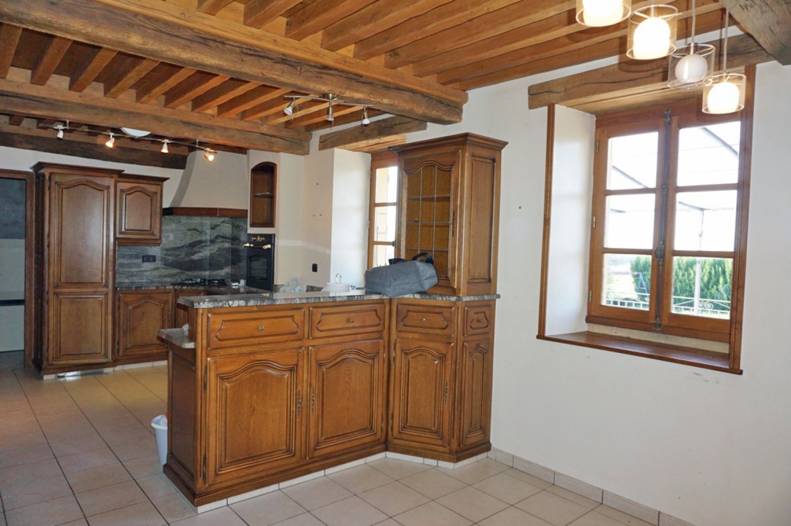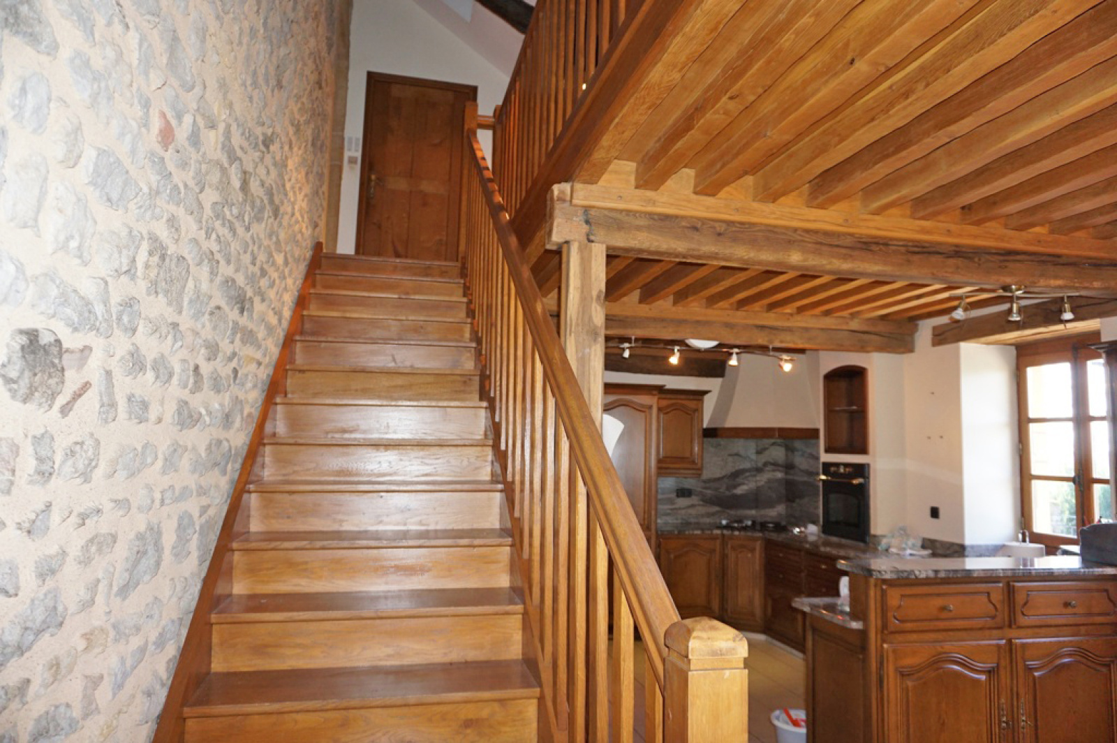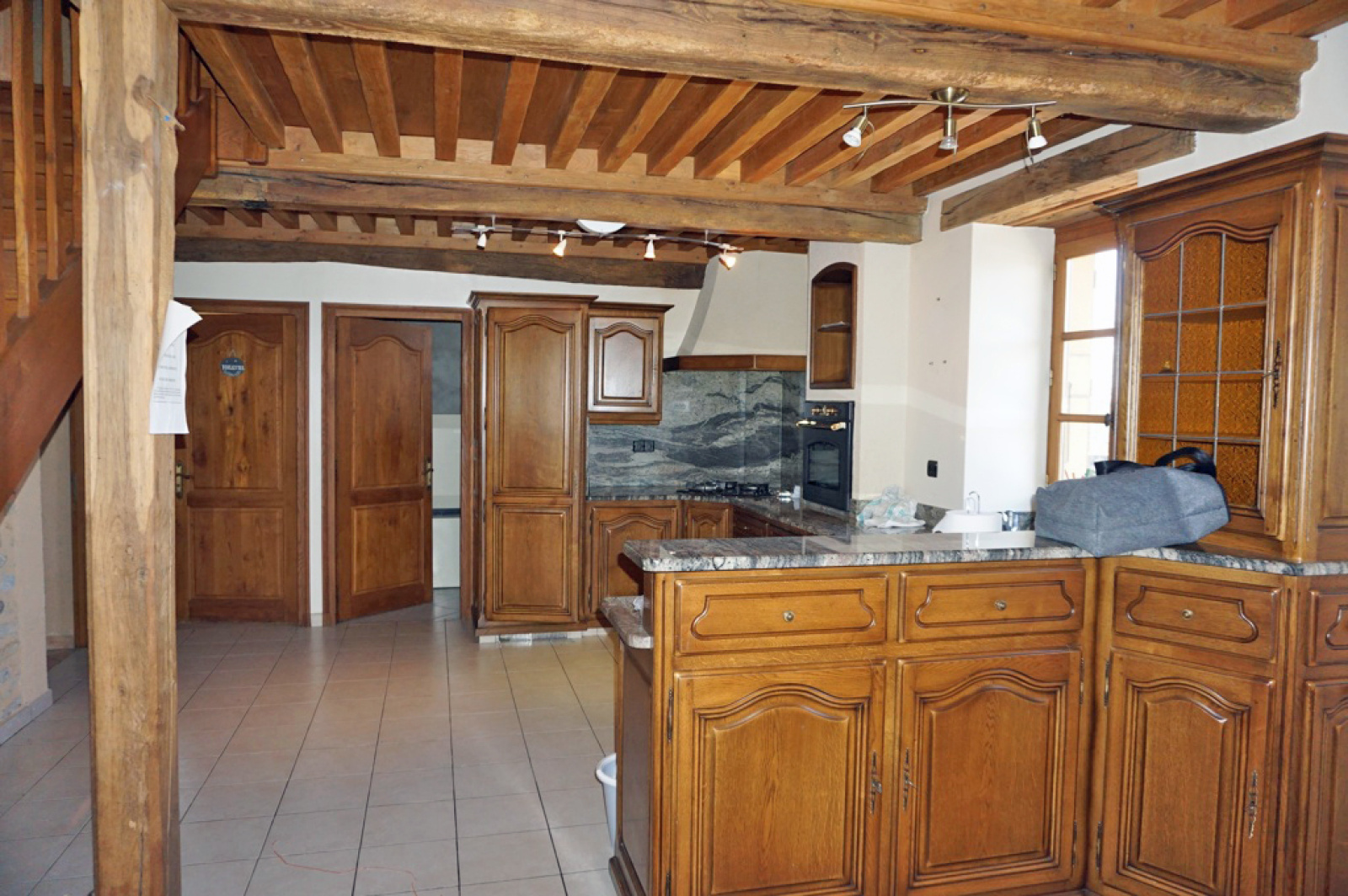 - Au rez-de-chaussée : grande cuisine aménagée avec plafonds à la française avec terrasse, salle à manger, salon séparé avec cheminée, wc, chaufferie.