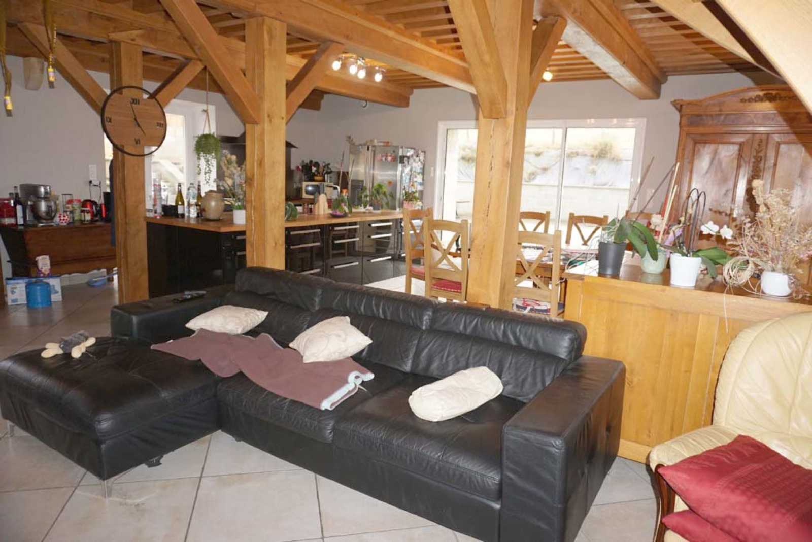 - Au rez-de-chaussée : entrée dans une grande et agréable pièce à vivre avec cuisine équipée (îlot central) et de beaux plafonds à la fançaise, une autre grande cuisine avec accès terrasse et garage, chaufferie, cave et wc.