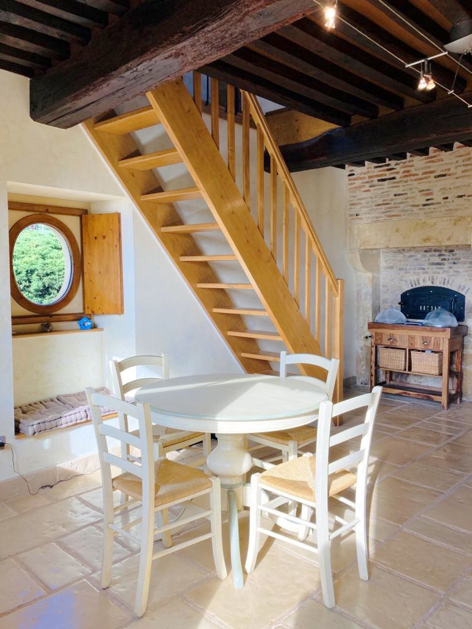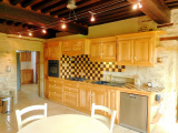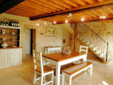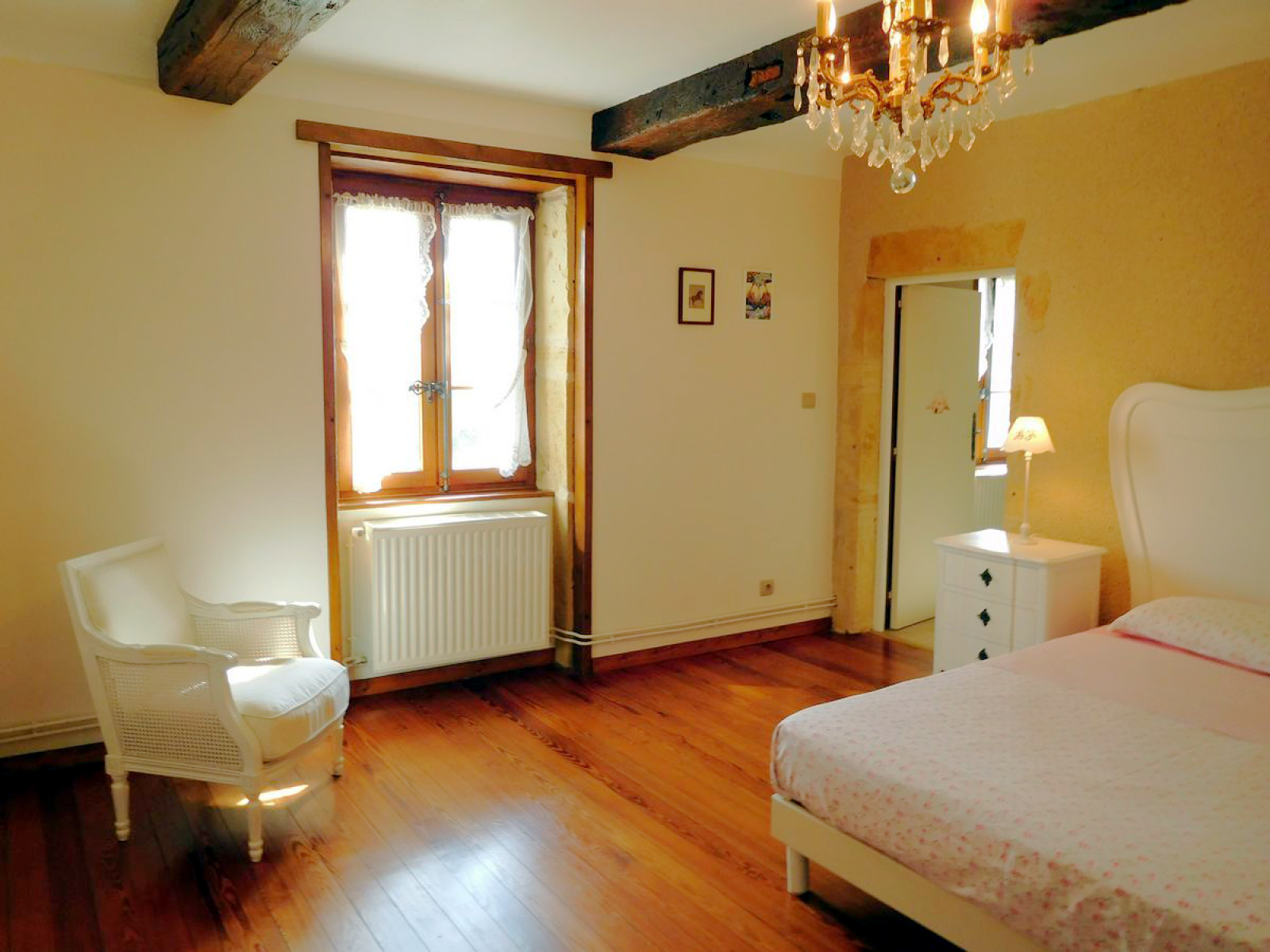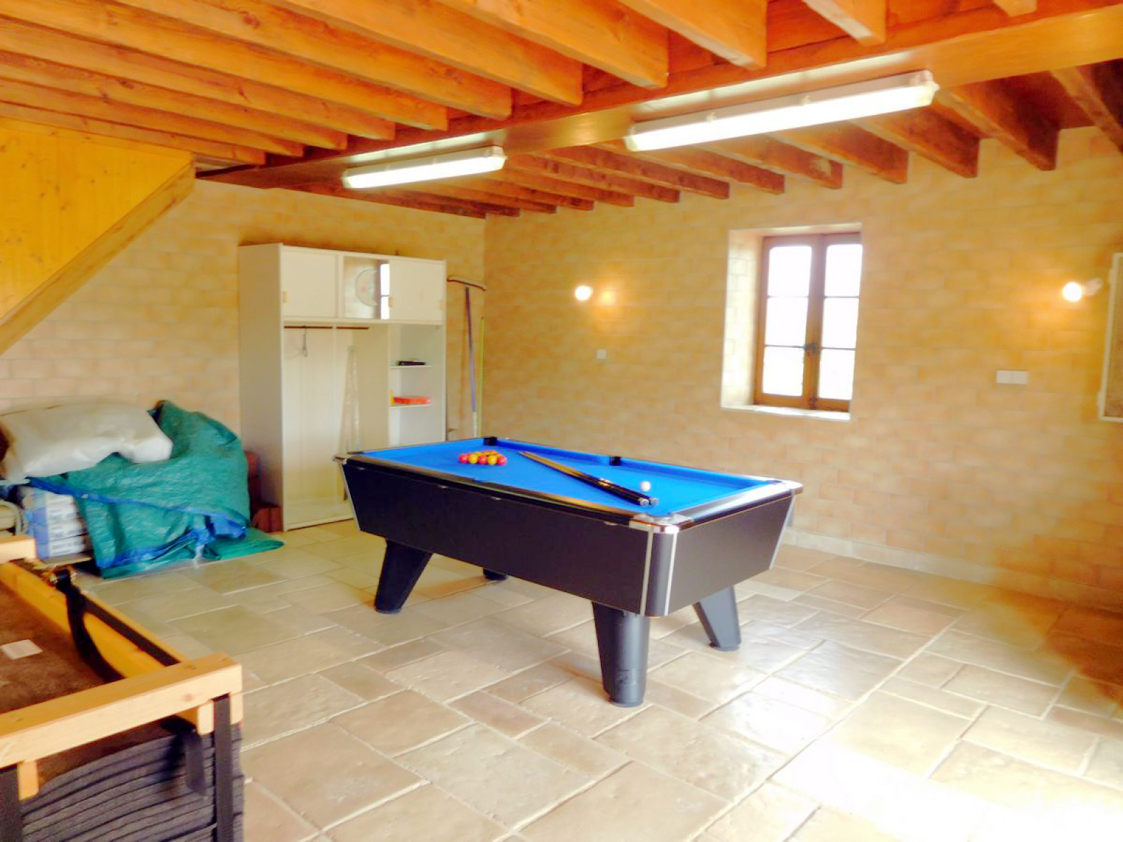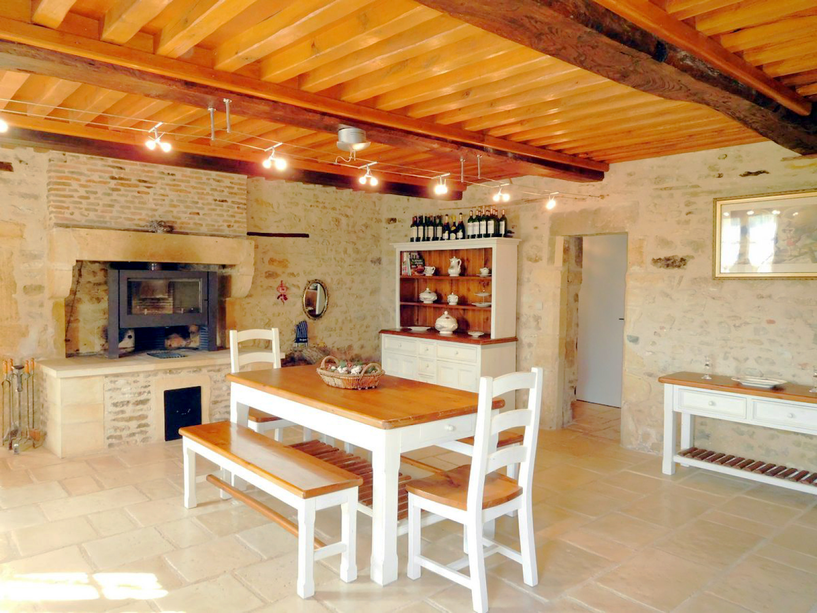 - Au rez-de-chaussée : un grand séjour avec cheminée en pierre avec poêle à bois, un salon, une cuisine équipée, une arrière cuisine, une salle d'eau, un WC et une cave.