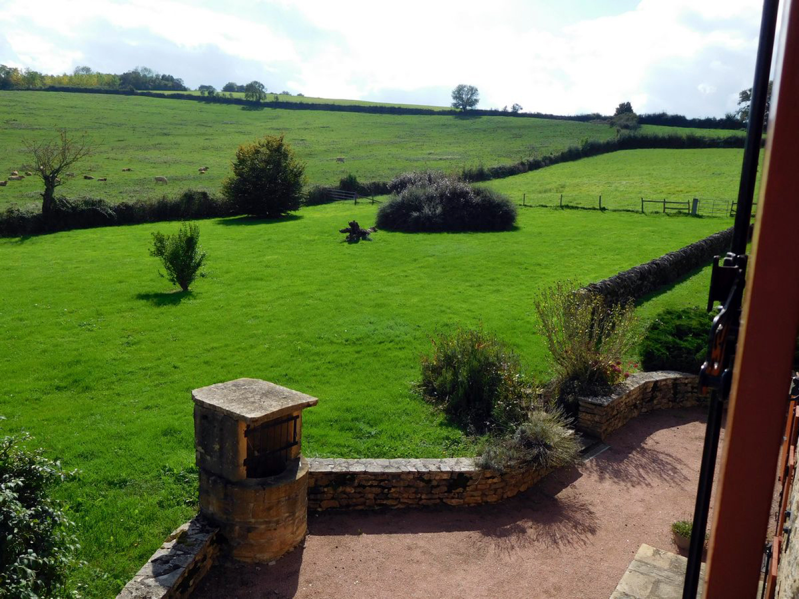 Cour et terrasse avec puits, jardin, pré attenant le tout sur 10 954 m² avec une très belle vue dégagée.