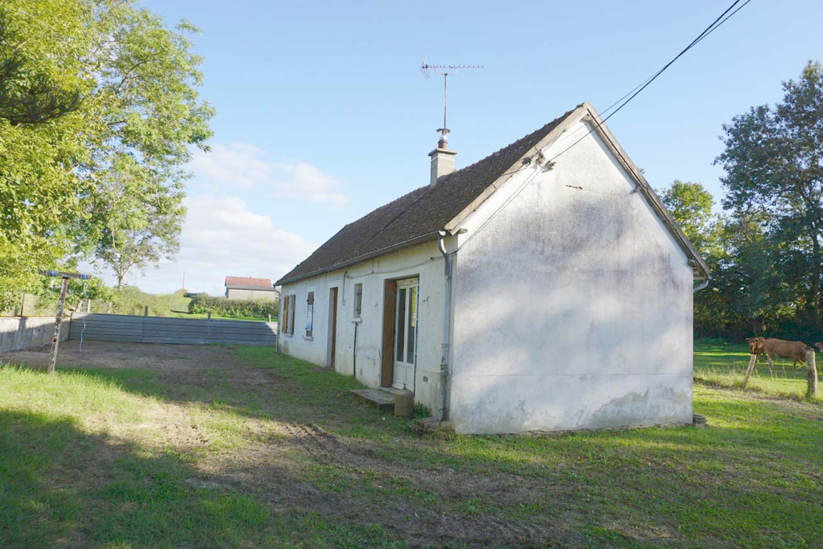 Entre Dompière sur Besbre et Coulange, maison à rénover offrant de plain-pied 65 m² habitables environ et comprenant : cuisine, séjour, deux chambres, salle d'eau et WC. Un garage attenant.Cour et jardin avec puits d'une surface de 650 m².